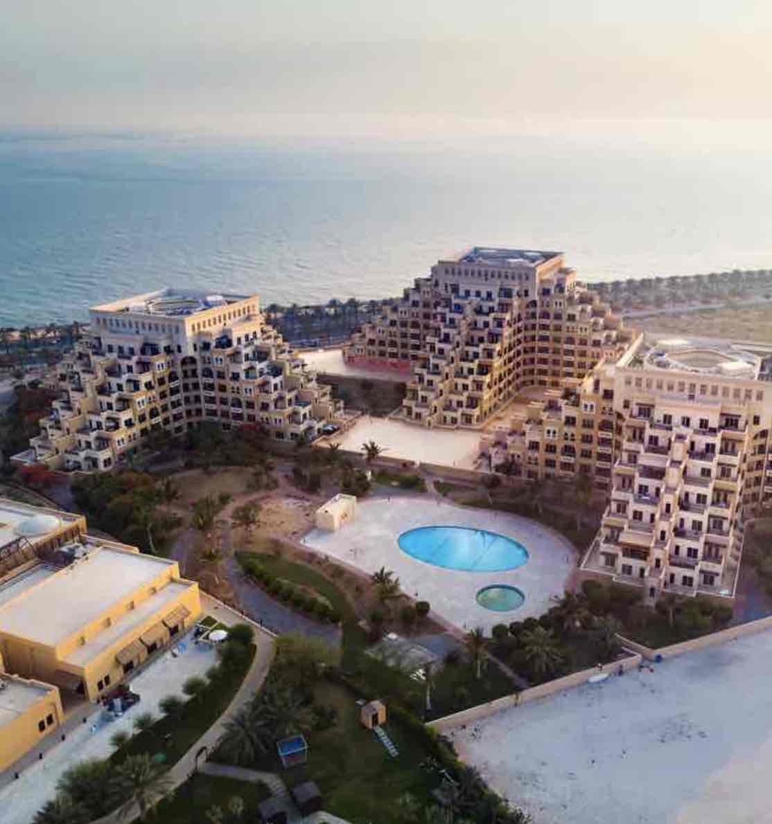 Bab al Bahr Apartments on Marjan Island is an exclusive residential area offering a blend of secluded luxury and modern elegance. Consisting of six pyramid-like buildings, three of which are part of the Rixos Hotel, Bab al Bahr stands out from ordinary complexes with its state-of-the-art amenities and breathtaking views.